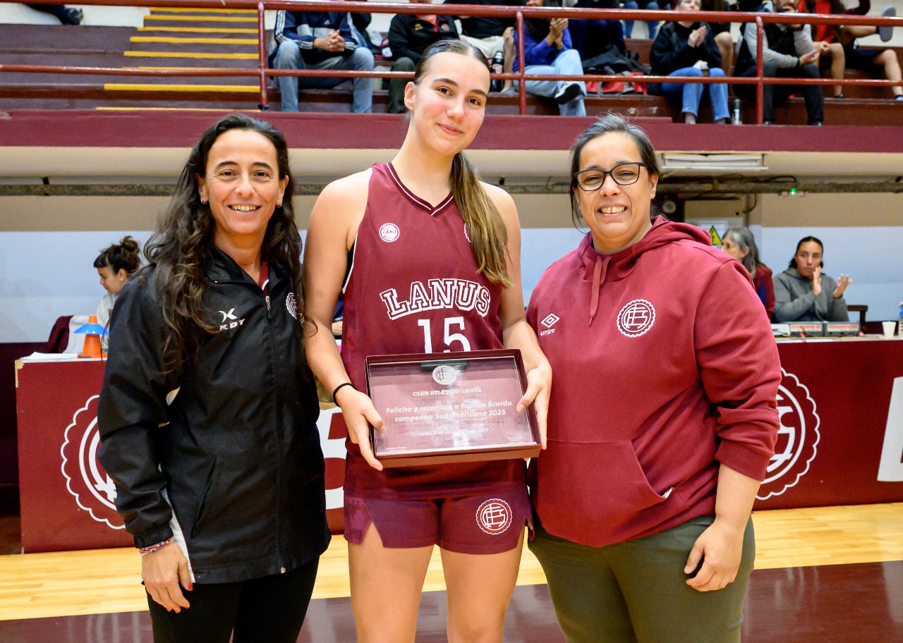 Club Lanús reconoció a Renata Scordo, jugadora U17 que integró la Selección Argentina campeona del Sudamericano de Asunción 2025.